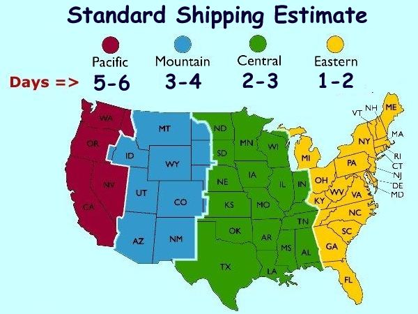 shipping time on the East Coast is just 1 to 2 days, the Midwest is 2 to 3 days, and the West
